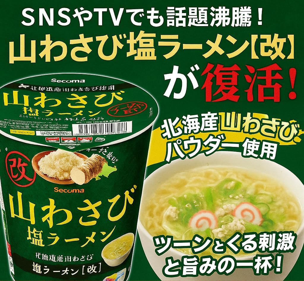 ✅ 「販売終了」の噂は誤解であり、現在も「山わさび塩ラーメン改」として安定販売されている